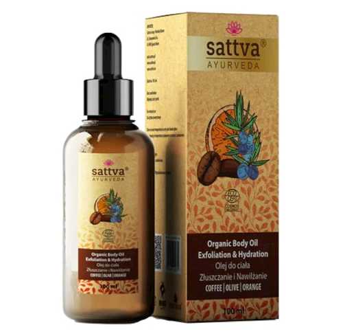 ყავა და ფორთოხლის ზეთი დამატენიანებელი და მკვდარი უჯრედების მოსაშორებლად 100მლ Coffee And Orange Body Oil Exfoliation And Moisturizing Eco 100ml Sattva (Ayurveda)