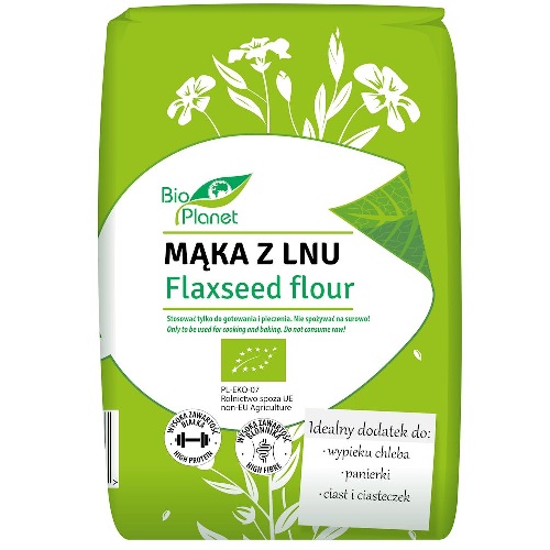 Organic brown flax seed flour can be used alone or as an addition to other flours. Recommended for baking bread, confectionery and preparing desserts, incl. jelly, puddings. It can also be used as a sprinkle or coating.
