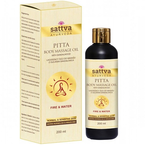 ინგრედიენტები: სეზამის (Sesamum indicum) თესლის ზეთი, ქოქოსის (Cocos nucifera) ნაყოფის ზეთი, თეთრი სანდალოზის (Santalum album) ზეთი, ნარდოსტაქისის (Nardostachys jatamansi) ფესვის ზეთი, ქრიზოპოგონ ზიზანიოიდესის ზეთი, ლიმონის (Citrus limon) ცედრა, ძირტკბილას (Glycyrrhiza glabra) ღერო, დამასკური ვარდის (Rosa damascena) ყვავილები. გამოყენების წესი: საუკეთესო შედეგის მისაღწევად გამოიყენეთ თბილი ზეთი. წაისვით ზეთი მთელ სხეულზე, შეიზილეთ სრულ შეწოვამდე. აიურვედა გვირჩევს ყოველდღიურად წავისვათ სხეულის ზეთი (აბჰიანგა) შხაპის ან აბაზანის მიღებამდე. გაფრთხილება: არ არის შესაფერისი ბავშვებისთვის. არ გამოიყენოთ ორსულობის ან ძუძუთი კვების დროს. გამოყენებამდე ჩაატარეთ ალერგიის ტესტი კანის მცირე ფართობზე. შენახვის პირობები: შეინახეთ გრილ და მშრალ ადგილას. მწარმოებელი: Sattva . წარმოების ქვეყანა: პოლონეთი. იმპორტიორი საქართველოში: შ.პ.ს ორგანიკა, თბილისი, ვაჟა ფშაველას გ. 51, ირ. აბაშიძის 61. . ტელ: +995551977887, 405172316, www.organika.ge