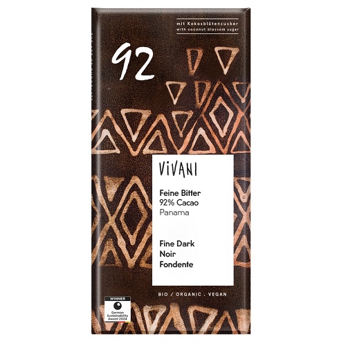 The 80 g bar means that “Fine Dark 92 %” is a little flatter than VIVANI’s standard 100 g large format bars. Gourmets know that this turns a peerless taste into a consummate experience.