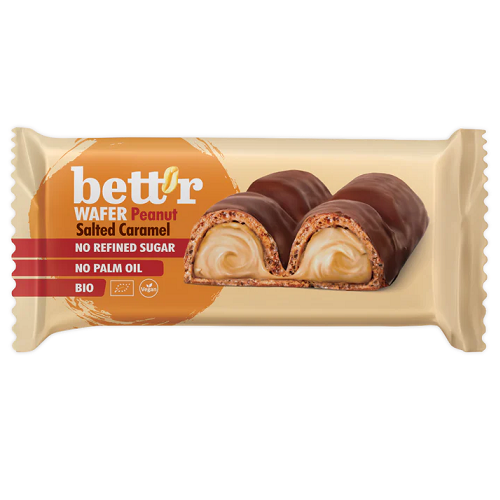 ორგანული ვაფლი არაქისი & კარამელი მარილიანი 33გ Organic Wafer with Peanut & Salted Caramel 33გ Bett’r