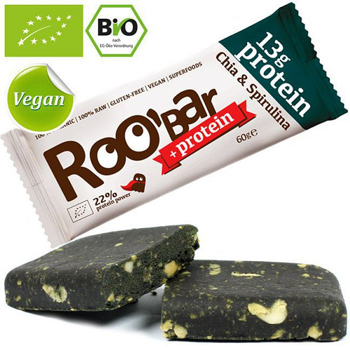 Roobar პროტეინის ბატონი ჩიას თესლებით და სპირულინით 60გ Protein Bar With Chia Spirulina 60g Roobar