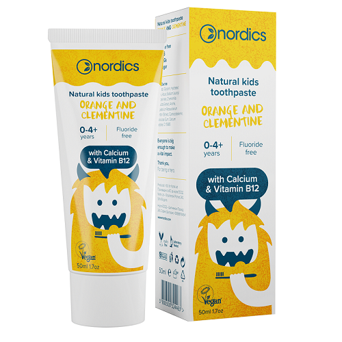 საბავშვო კბილის პასტა ვიტამინი B12, ციტრუსი 50მლ Orange With Vitamine B12 Toothpaste For Kids 50ml Nordics