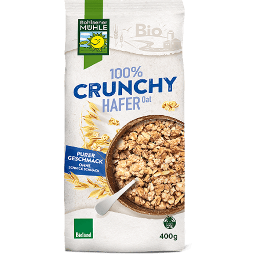 ინგრედიენტები: მთელმარცვლოვანი შვრიის ფანტელები* 72%, ჭარხლის შაქარი*, მთელმარცვლოვანი შვრიის ფქვილი* 11%, მზესუმზირის ზეთი*, გაფუებული შვრია* 3%, თაფლი*, ზღვის მარილი * სერთიფიცირებული ბიომეურნეობიდან. შეიძლება შეიცავდეს სხვა მარცვლეულს, რომელიც შეიცავს გლუტენს, ნუშის, თხილს, სეზამს, სოიას, რძეს, კვერცხს და ნიახურს. ალერგენები: შვრიის ფანტელები, შვრიის ფქვილი, აფუებული შვრია, წებოვანა, კვერცხი, სოიო, რძე, ნუში, ნიახური, სეზამი. კვებითი ღირებულება 100 გ-ზე: ენერგეტიკული ღირებულება 1828 კჯ / 435 კკალ ცხიმი 13,1გრ – აქედან გაჯერებული ცხიმოვანი მჟავები 1,9გრ ნახშირწყლები 64,7გრ – აქედან შაქარი 15,1 გ ბოჭკოვანი 7,3 გ ცილა 10,9გრ მარილი 0,12გრ. შენახვის პირობები: შეინახეთ მშრალ და ბნელ ადგილას. მწარმოებელი: Bohlsener Muehle. წარმოების ქვეყანა: გერმანია იმპორტიორი საქართველოში: შ.პ.ს ორგანიკა, თბილისი, ვაჟა ფშაველას გ. 51, ირ. აბაშიძის 61, +995551977887, 405172316, www.organika.ge