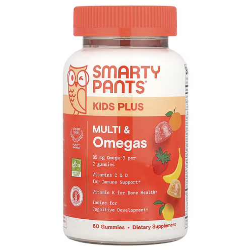 SmartyPants, Kids Plus, Multi & Omegas Gummies, Lemon, Orange, and Strawberry Banana, 60 Gummies